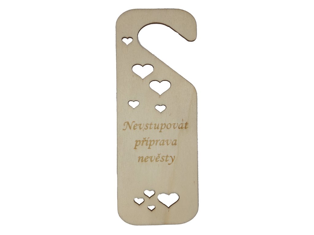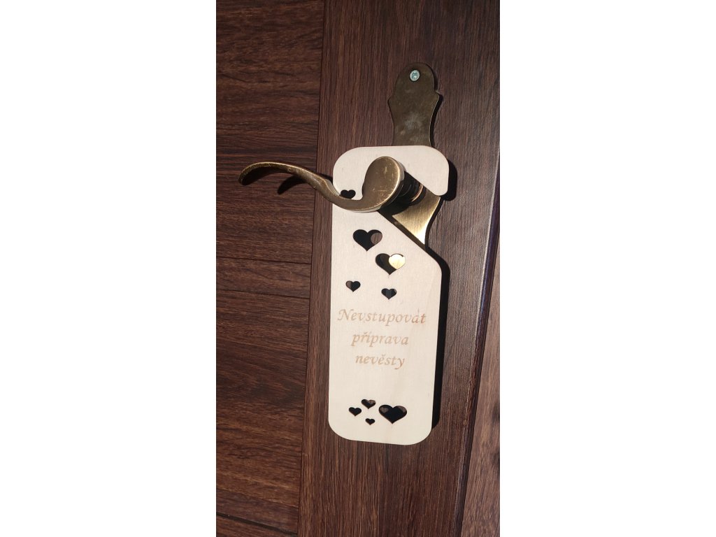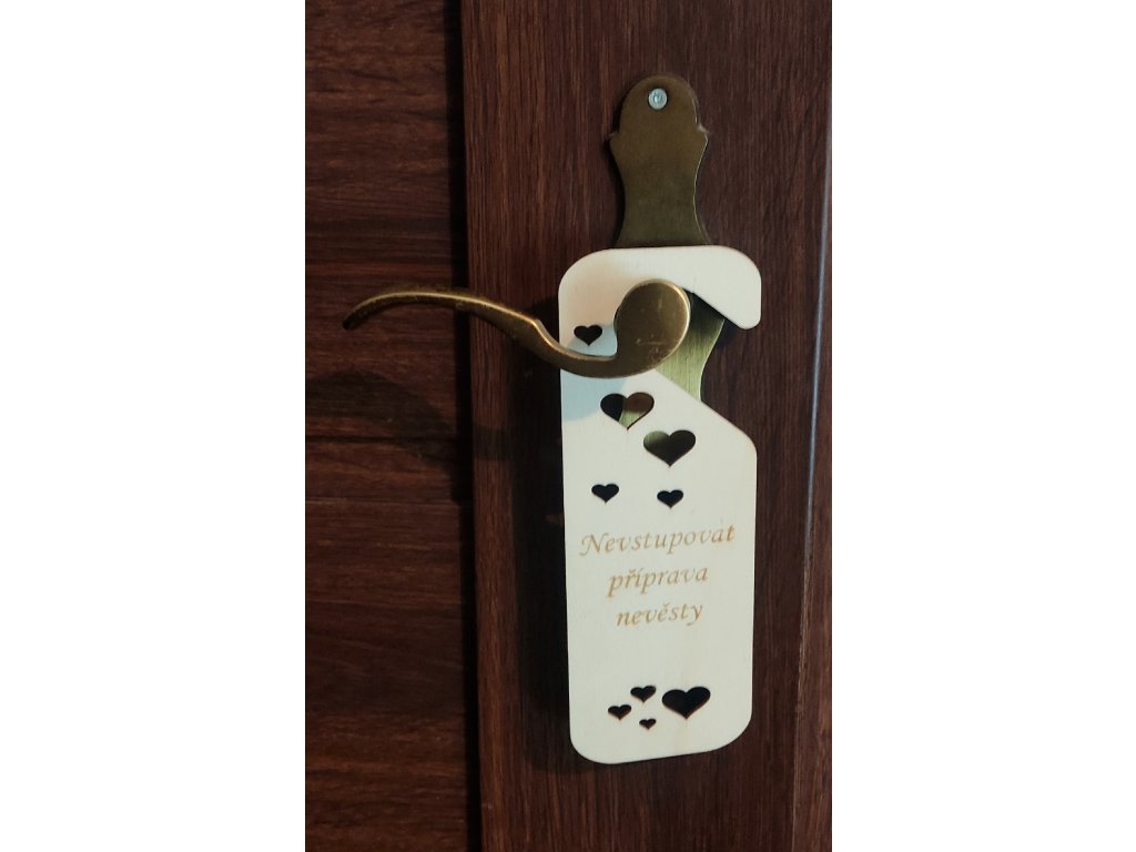 Svatební závěs na dveře s textem na přání. Originální svatební doplněk, především při přípravě nevěsty se hodí upozornit nedočkavého ženicha.